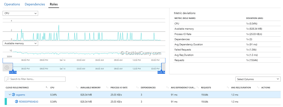 Metrics: This monitoring tools provides many built-in metrics that we can view, for example – Availability Test Results, Server Exceptions, Request Rate and many more.