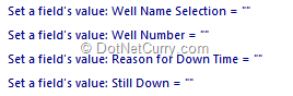 In this instance, all new data ends up at the top of the field. Reversing this would put it at the bottom. IE..concat(Wells Down Column1, @crlf, Well Name Selection).