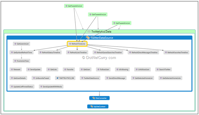 As we can see from the above code, we were able to narrow down to the RefreshTimeLine method that had multiple dependent methods as per the Code Map. Assuming we had a bug in the RefreshTimeLine method, we could easily right click on it and do the following