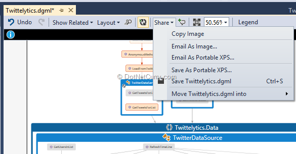 2. Sharing Options: Finally the Code Map can be shared in various formats as seen from this menu making it easy to use it for documentation, archival or simply brainstorming!