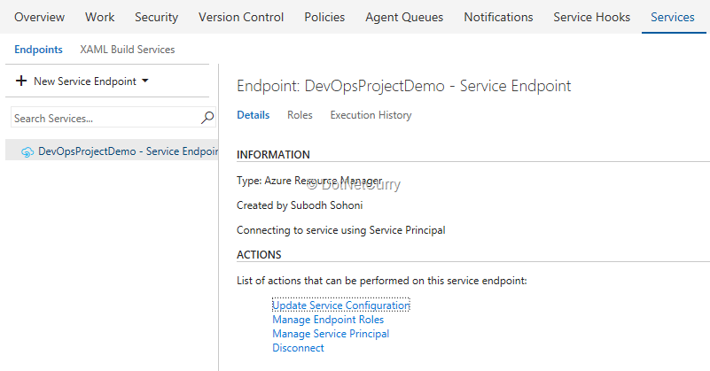 I have selected to use my existing VSTS and Azure subscriptions but have given a name of a team project which does not exist, so that it will be created.